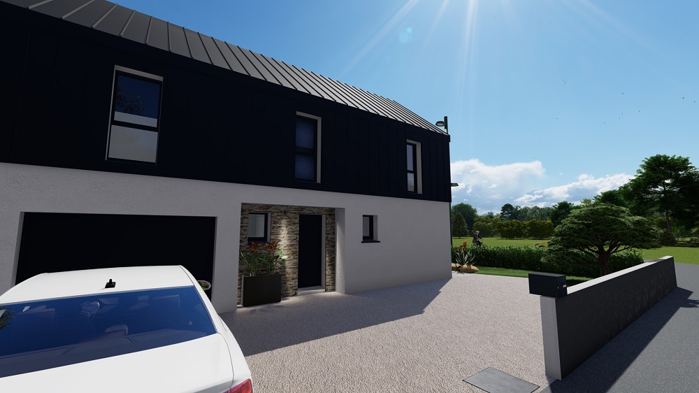 Be-Home, constructeur de maison à Ploeren, vous propose ce plan sur-mesure réalisé pour un prospect. Découvrez cet habitat moderne coiffé d’une couverture en zinc, proposant 4 chambres et 1 mezzanine !