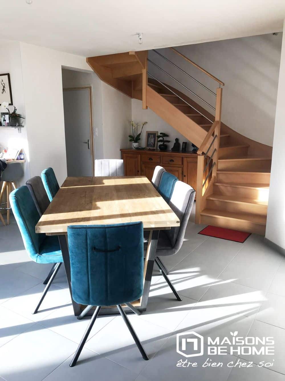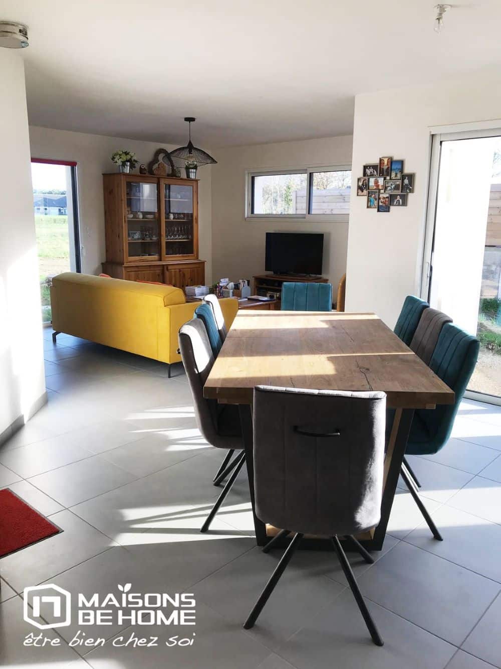Be Home, constructeur de maison à Ploërmel à dû composer avec les limites de propriétés et la surface du terrain. Cette maison est construite en limite de propriété. L’un des enjeux ici est donc de maximiser au mieux l’éclairage. Au rez-de-chaussée, les ouvertures ont été volontairement mulitplié.