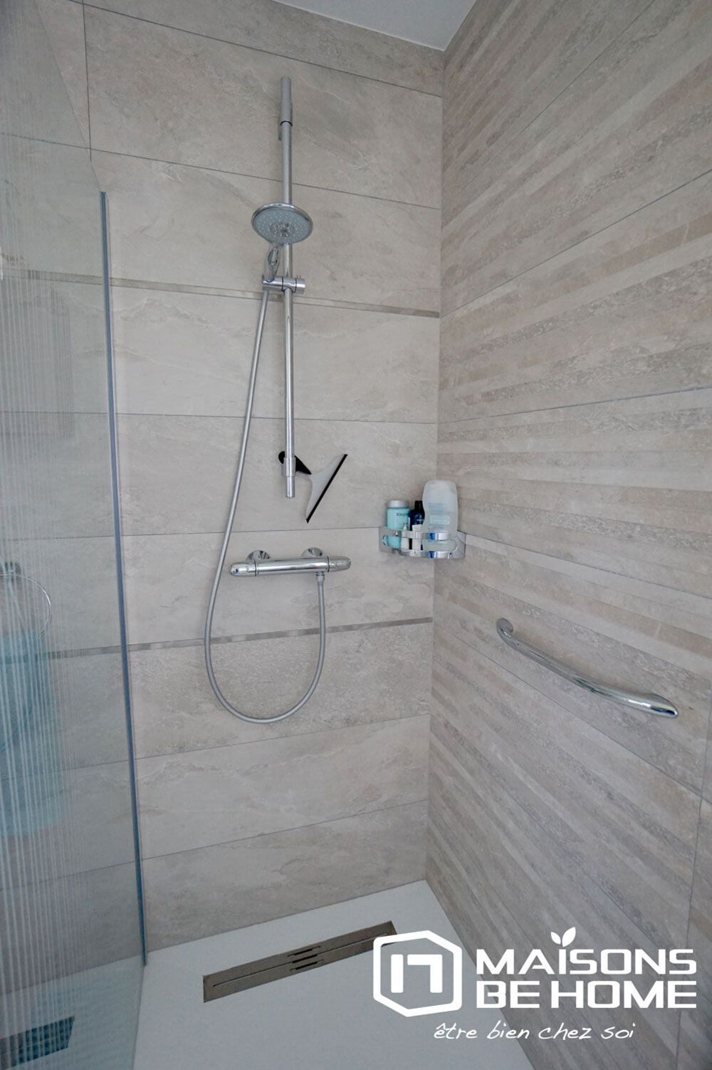 Une salle d’eau élégante : Une douche italienne spacieuse et des matériaux de qualité alliant style et confort.