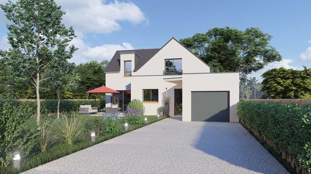 Be Home, constructeur de maison à Colpo, dans le Morbihan, a conçu ce projet de maison familiale pour l’un de ses clients. Cette réalisation se caractérise par son volume à toiture double pente en ardoise. Avec une surface de 123 m² répartie sur deux niveaux incluant une mezzanine, découvrez cette conception pensée pour la vie de famille !