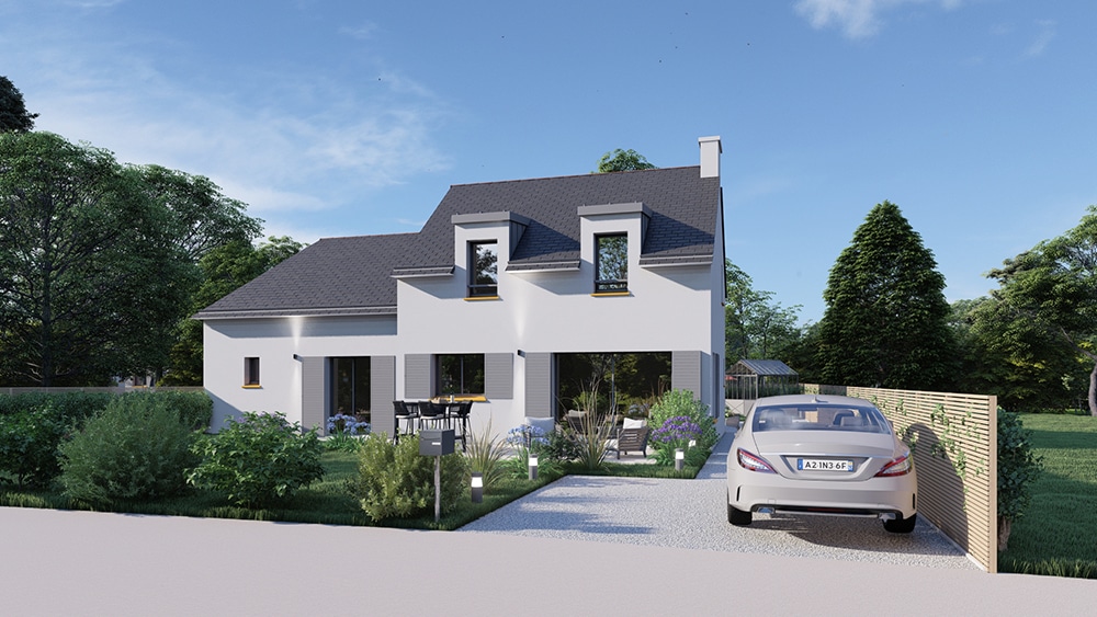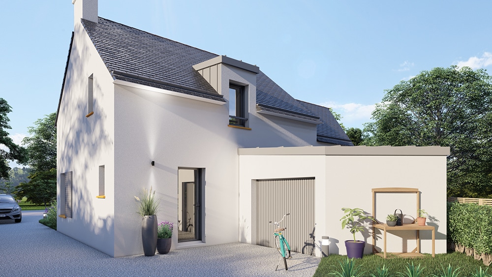 Ce projet de maison traditionnelle à Locmariaquer dans le Morbihan (56), dispose d’un garage de 17 m2 et d’un grenier de 24 m2.