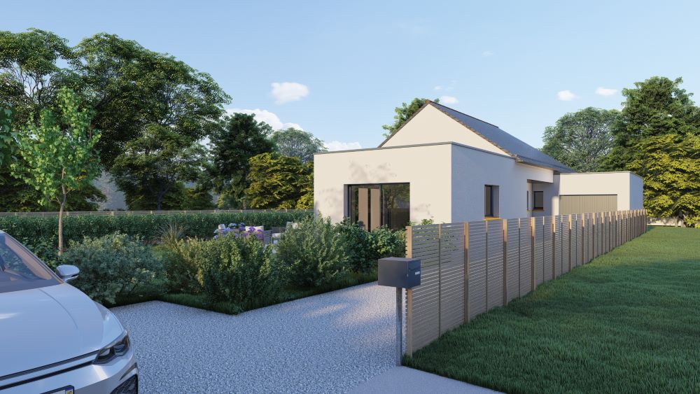 Avec trois chambres dont une suite parentale, une grande pièce de vie ouverte sur le jardin et un garage couvert attenant, cette maison ploemeuroise allie modernité et praticité pour un cadre de vie agréable. Découvrez ce projet de construction à Ploemeur dessiné sur-mesure pour des prospects.