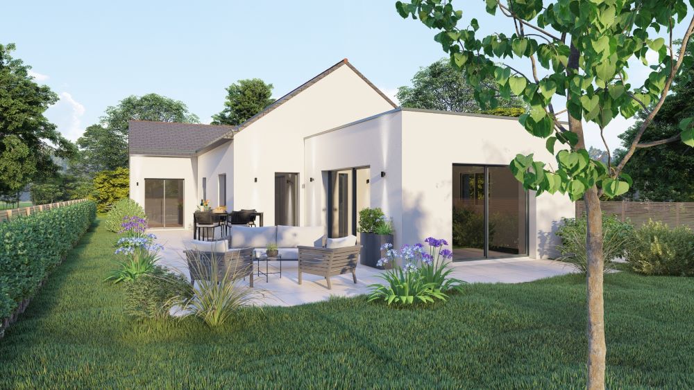 Tout se passe sur un seul niveau. Ce projet de construction à Ploemeur propose une maison accessible pour tous les âges. Elle comprend un coin nuit et un coin jour.
