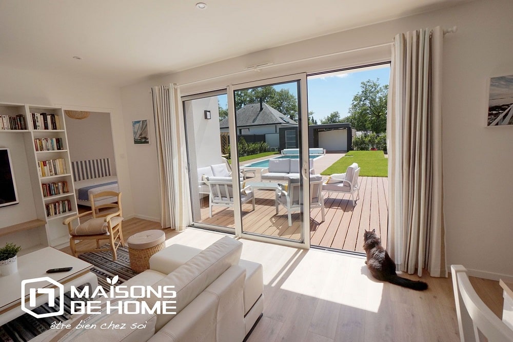Découvrez cette construction de Maison à Crach dans le Morbihan (56), une maison de plain pied avec terrasse et piscine, d’une surface de 108 m² habitables. Cette maison a été réalisée par nos clients pour de la location saisonnière.