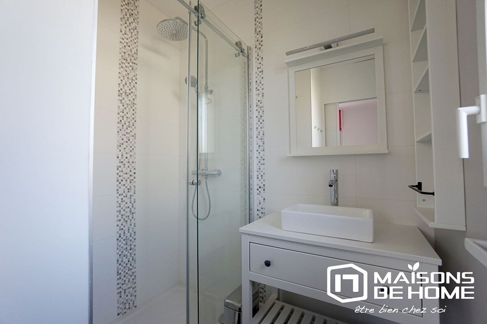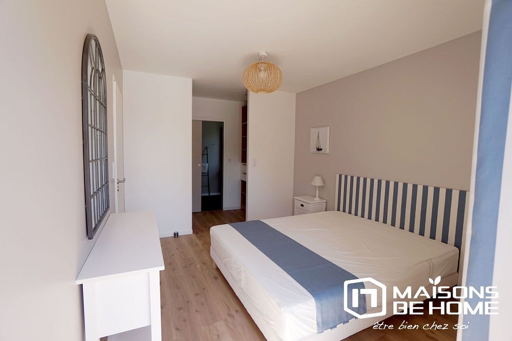 L’espace nuit comprend 3 chambres. La 1ère chambre est une suite parentale avec dressing, salle d’eau et toilettes. La chambre dispose d’un accès sur la terrasse et d’une vue imprenable sur la piscine et le jardin. Les deux autres chambres donnent côté pignon et disposent de salles d’eau privatives.
